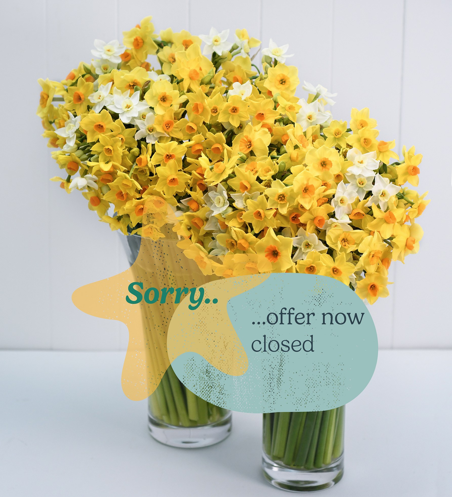 From October to Easter different varieties of scented narcissi flower at different times so the flowers sent may differ slightly from those shown. Although we try to include a mixture, it might not always be possible to include both white and yellow varieties. Please call if you have a specific request or need more information.