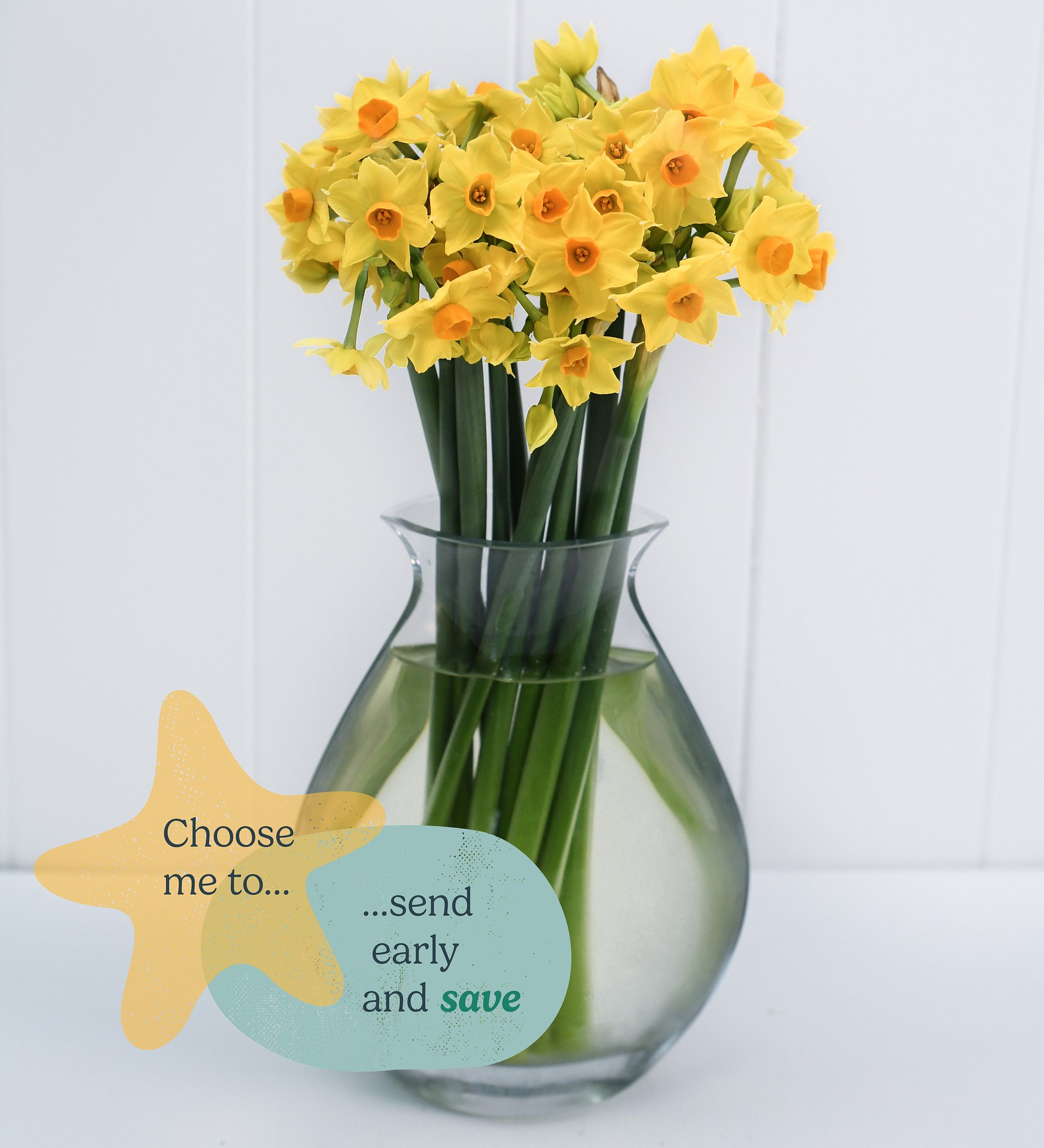 From October to Easter different varieties of scented narcissi flower at different times so the flowers sent may differ slightly from those shown. Although we try to include a mixture, it might not always be possible to include both white and yellow varieties especially during December. Please call if you have a specific request or need more information.