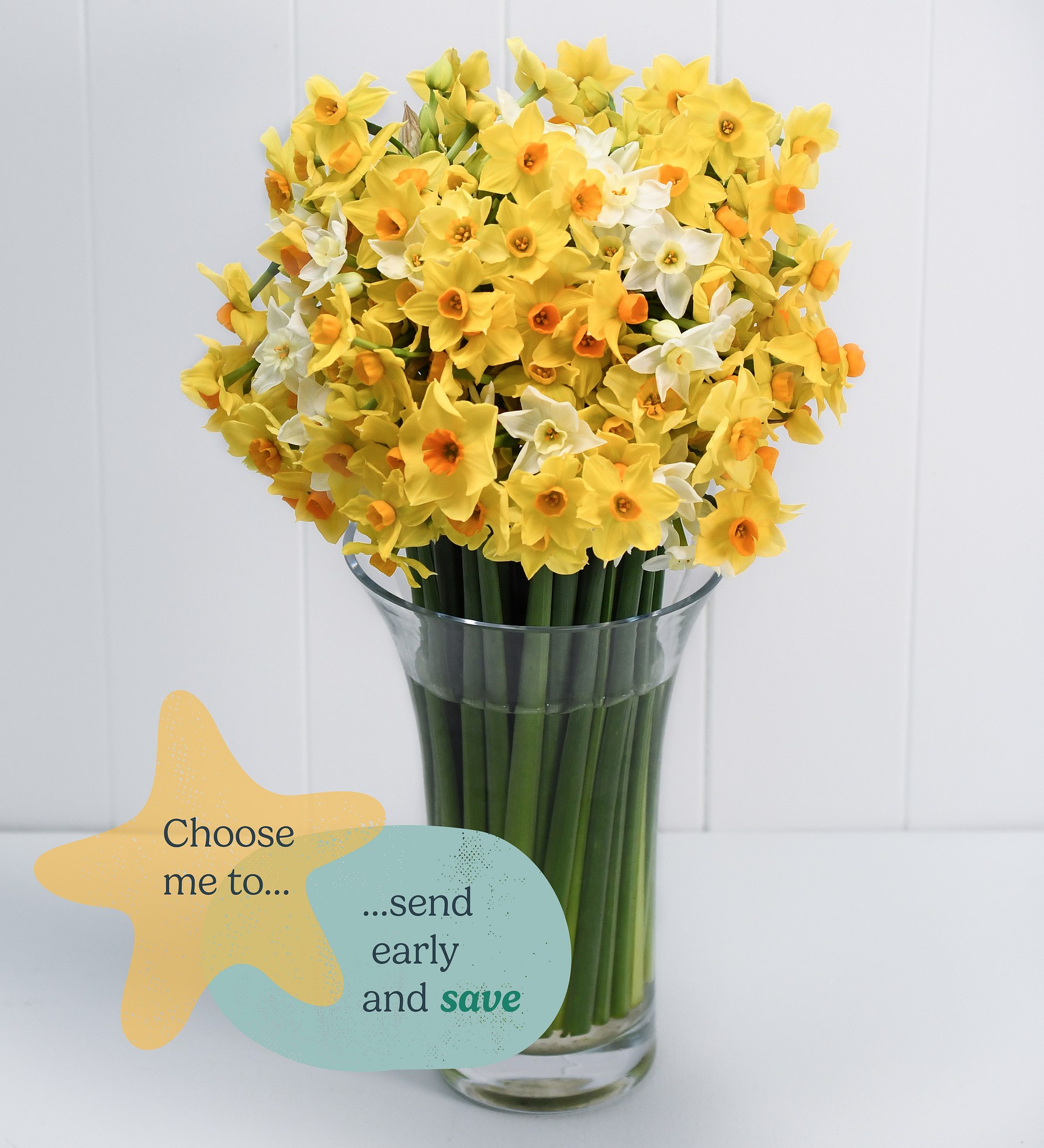 From October to Easter different varieties of scented narcissi flower at different times so the flowers sent may differ slightly from those shown. Although we try to include a mixture, it might not always be possible to include both white and yellow varieties especially during December. Please call if you have a specific request or need more information.